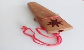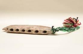 Instrumento de viento hecho de madera, posee un solo agujero en la parte superior, emitiendo una sola nota.