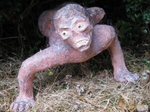 La Fiura 🡪 Es la mujer del viril Trauco, pero eso no le impide demostrar su amor a otros hombres. No acepta ninguna mirada y quien lo hace queda torcido en algún lugar y si es un niño o animal le deforma las extremidades imposibilitándole la marcha. Ni los hombres más fuertes pueden vencerla, pues los deja maltrechos, asestarle un golpe es como pegarle a la sombra. Por su origen, aventaja en ferocidad y maldad a su padre-marido deleitándose con el sufrir de las personas. Vaga por los bosques y se esconde entre los matorrales.