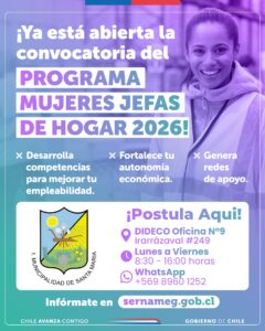 Mientras tanto la difusión e información respecto al programa está disponible en el Facebook Programa Mujer Jefas de hogar Santa María, y en las redes sociales de la municipalidad como Instagram o Facebook.